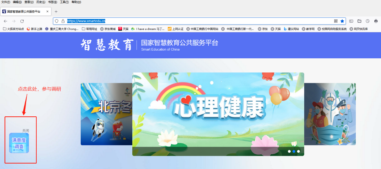 国家智慧教育公共服务平台于2022年3月28日正式上线启动,其中,国家高等教育智慧教育平台首批上线2万门课程,是从1800所高校建设的5万门课程中精选的优质课程,课程覆盖了13个学科92个专业类,课程资源丰富,课程质量高。现将《重庆市教育委员会办公室关于推广使用国家智慧教育公共服务平台和开展用户满意度调查的通知》转发给各单位,请各单位按照通知要求,加大宣传力度,做好平台的宣传推广,并就平台应用情况进行满意度调查,组织本单位师生员工参与调研。