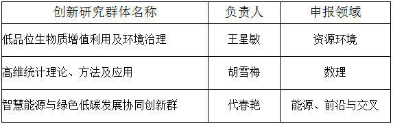 根据《重庆市教育委员会办公室关于开展2020年高校创新研究群体申报工作的通知》规定的申报条件和限额申报要求,经专家评审,学校审定,确定推荐申报2020年高校创新研究群体名单,现公布如下:
