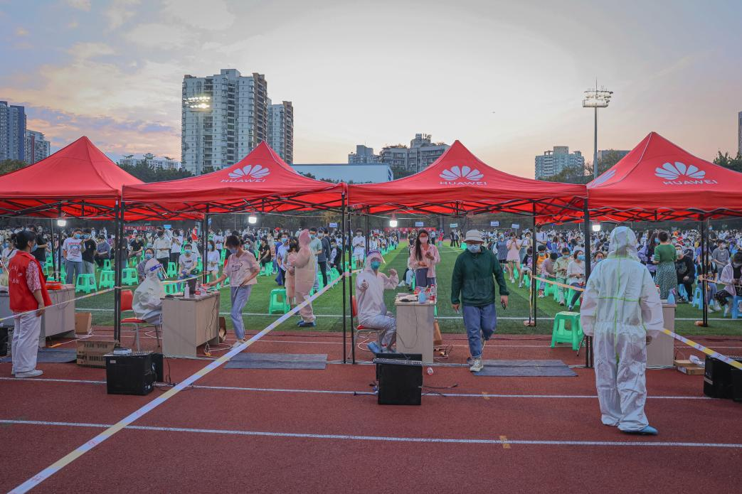虽然重庆温度已经达到32度,在炎热的天气下,相关部门、各学院都各司其职、精心组织,志愿者和医务人员不辞辛劳,始终坚守在防疫第一线,师生员工分批错峰到达采样现场,等候登记、样本采集,有序离场,各项工作有条不紊开展。