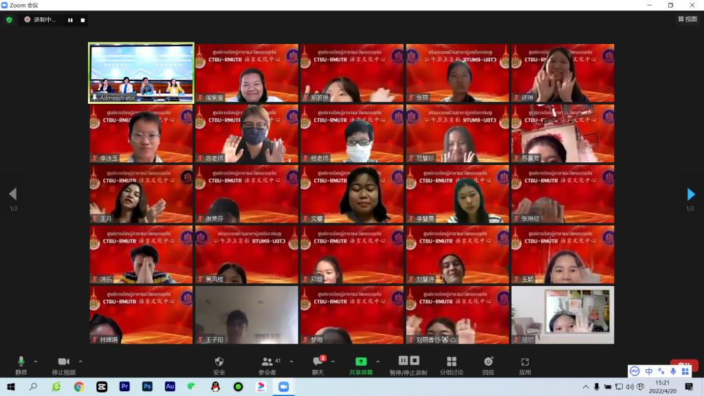 2022年4月20日是第十三个联合国中文日暨第三个国际中文日,这一天是中国农历中的“谷雨”,也是传说中仓颉造字的日子。教育部中外语言交流合作中心发起了“中文:共筑美好未来”的活动倡议。我校积极响应,与泰国乐德纳可信皇家理工大学合作举办“留学生中文才艺视频大赛”。两校师生相聚云端,通过中文歌曲演唱、诗词朗诵、演讲等多种形式,一同品味中文的独特魅力。