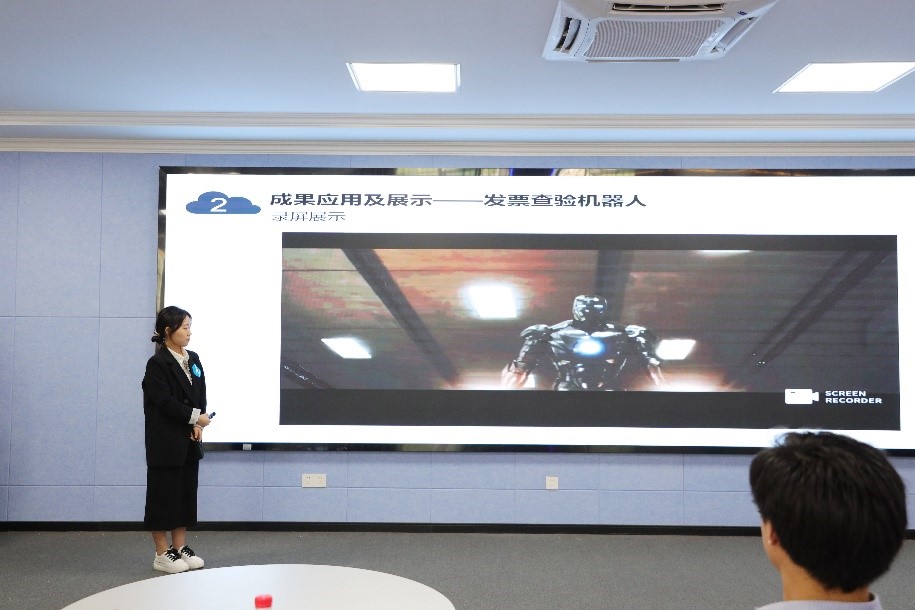 会计学院院长罗勇致辞,他指出会计学院以服务国家和区域战略为导向,以产教深度融合为抓手,通过顶层设计和系列措施推动研究生人才培养的数字化转型。随后6支队伍依次上场展开现场比拼。每支队伍依次上场展示基于RPA技术在财务中的应用成果。比赛中,同学们自主研发的百优案例机器人、增值税发票填报机器人、发票查验机器人、电商平台智能交易机器人等精彩纷呈。