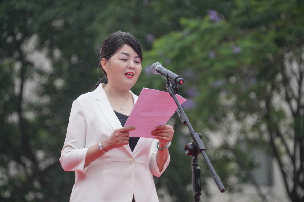 接下来,七位师生代表用原创诗歌《我想对你说》向学校70华诞献词。师生们深情回顾了学校70年来砥砺奋进、风雨兼程的办学历史和辉煌成就;激昂地展望了学校立足新时代、奋进新征程,不断实现高质量发展的新篇章。