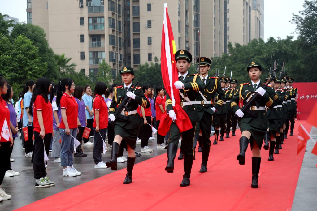 7时07分,升旗仪式正式开始。学校国旗护卫队队员昂首挺胸,脚步坚定铿锵,护卫着五星红旗走向升旗台。在雄壮的国歌声中,五星红旗冉冉升起,全体师生向国旗行注目礼,齐唱中华人民共和国国歌,深情表达对伟大祖国的热爱和对学校的祝福。