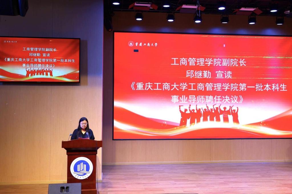 毕业典礼中,还举行了工商管理学院本科生事业导师聘任仪式。邱继勤宣读了《华体会中国有限公司官网工商管理学院第一批本科生事业导师聘任决议》,聘请了30位MBA毕业生作为工商管理学院第一批本科生事业导师。