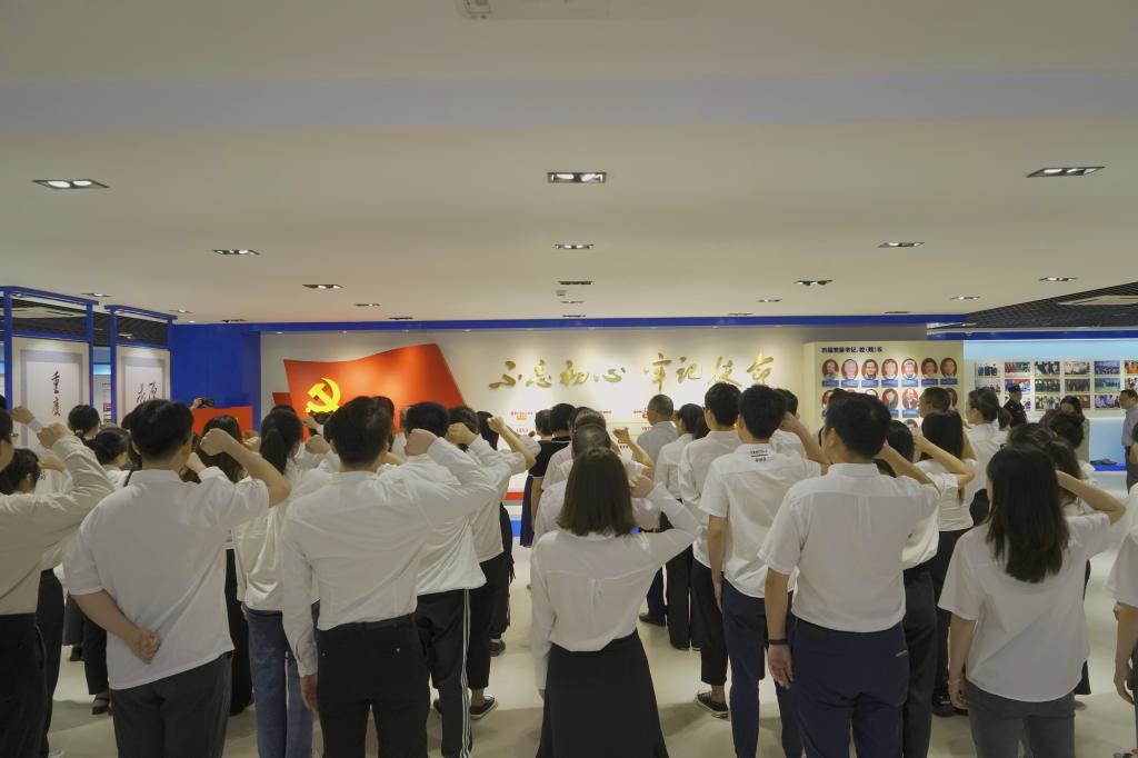 入党宣誓及重温入党誓词由宋豫领誓。面对鲜红的党旗,胸戴党徽的党员们在领誓人的带领下,神情庄重,高举右拳,庄严宣誓:“我志愿加入中国共产党,拥护党的纲领,遵守党的章程,履行党员义务,执行党的决定,严守党的纪律,保守党的秘密,对党忠诚,积极工作,为共产主义奋斗终身,随时准备为党和人民牺牲一切,永不叛党。”入党誓词,句句千钧,诚挚的誓言,表达了身为新时代党员的责任和担当。