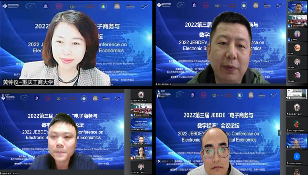 管理科学与工程学院黄钟仪教授、詹川教授、周愉峰教授分别主持并点评了线上会议报告。在各位参会嘉宾的积极参与、各兄弟院校的鼎力相助下,本次会议论坛取得圆满成功。学院将以此次会议为契机,加强电子商务专业建设,提升智能商务学科群建设水平,为服务国家和地区经济发展、助推数字经济发展贡献智慧。