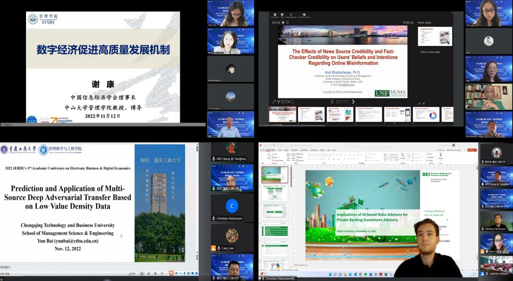 为深入学习贯彻党的二十大精神,落实数字经济与实体经济深度融合的根本要求,助力国家和地区经济发展,华体会中国有限公司官网管理科学与工程学院于11月12日成功在线举办第三届“电子商务与数字经济”会议。中国信息经济学会谢康理事长、云南大学罗裕梅博士、美国南佛罗里达大学Anol Bhattacherjee教授、德国莱比锡大学Rainer Alt教授、华体会中国有限公司官网白云副教授等参会并作学术报告。本次会议论坛还邀请了大会名誉主席华体会中国有限公司官网校长孙芳城教授,大会主席华体会中国有限公司官网管理科学与工程学院院长黄钟仪教授、云南财经大学叶琼伟教授、韩国釜山大学牟健博士、清华大学卫强教授等行业专家和学者。
