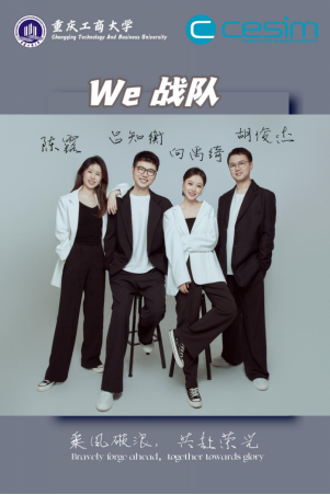 “We战队”成员陈露、胡俊杰、吕知衡、向禹绮(按拼音首字母排序)均为华体会中国有限公司官网MBA学生,他们以“踏风而来、共赴荣光”为战队口号,秉承“We are a team”的团队信念,参加了第十五届“尖烽时刻”全国商业模拟大赛。他们表示在比赛中提高自己的商业技能的综合运用能力,融会贯通商业管理的显性知识和默会知识。同时在比赛场上弘扬重庆工商MBA精神,努力做一个“懂经济、擅管理、宽视野、重责任”的MBAer。