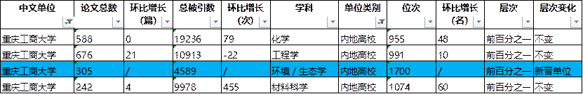 根据ESI(Essential Science Indicators)2023年5月11日公布的最新数据,我校“环境/生态学”学科首次进入ESI全球大学和科研机构排名前1%,是继“化学”、“工程学”和“材料科学”后又一进入ESI全球排名前1%的学科。学校ESI学科增加至4个,ESI学科数在重庆市市属高校中排名第二。