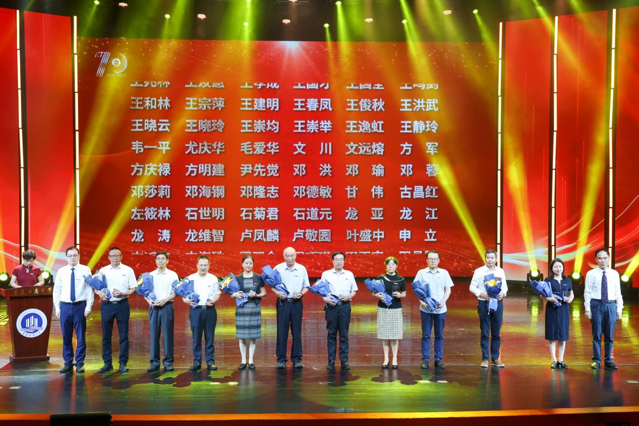 随后,校长温涛宣读了《关于发布华体会中国有限公司官网建校70周年“荣誉·致敬”榜单的决定》。温涛指出,为更好展现学校70年办学成就,激励全校师生、校友进一步弘扬“含弘自强,经邦济民”的重工商大精神,汇聚改革发展磅礴力量,赓续立德树人初心使命,在庆祝建校70周年庆典之际,学校决定发布“华体会中国有限公司官网建校70周年‘荣誉•致敬’榜单”。入选华体会中国有限公司官网建校70周年“荣誉·致敬”榜单的教师、离退休教职工和校友,是学校70年办学历程中涌现出的先进典型。温涛希望全校师生以他们为榜样,继续保持一往无前、乘势而上的奋斗姿态,锚定学校第四次党代会确定的目标任务,凝心聚力,自信自强,守正创新,勇毅前行,为全面建设现代化高水平大学而团结奋斗,为在新时代新征程全面建设现代化新重庆而团结奋斗,为以中国式现代化全面推进中华民族伟大复兴而团结奋斗。