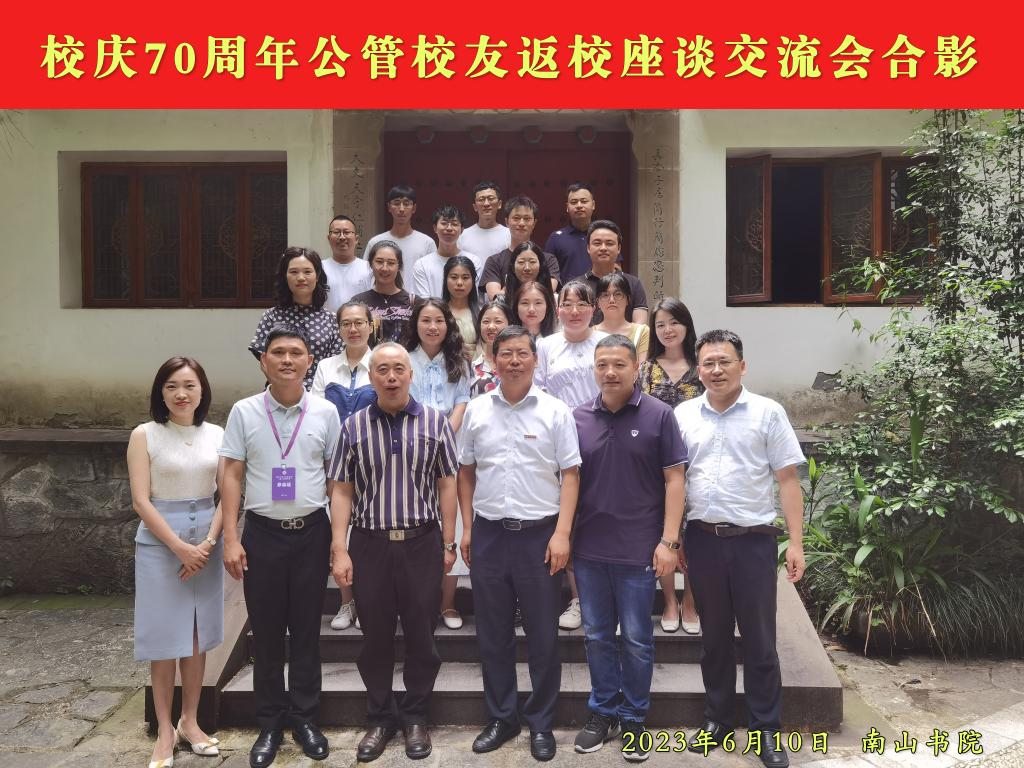 6月10日,公共管理学院校友分会在南山书院举办了以“七秩重工商,筑梦新时代”为主题的校友座谈会。教师代表骆东奇、李斌、吴香雪、王飞飞、刘乂萌等,学院班子成员彭勇、谢书楠、余建华,以及25名校友代表参加了会议。会议由学院党委书记、副院长彭勇同志主持。