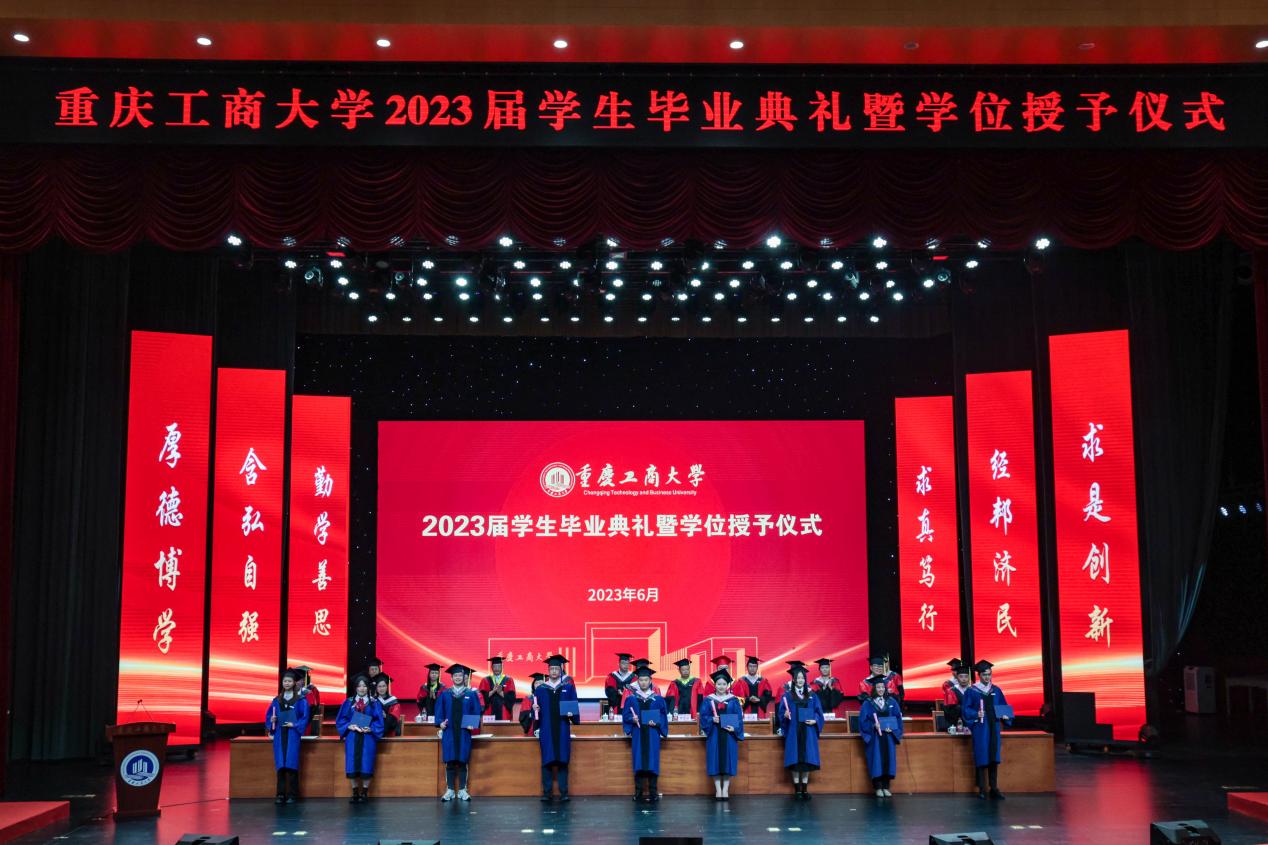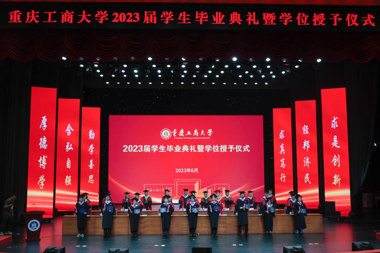 盛夏光年,骊歌悠远。2023届学生毕业典礼暨学位授予仪式于6月21日上午在华体会中国有限公司官网剧场隆重举行。本次毕业典礼采取“线上+线下”相结合的形式,现场典礼与网络直播同时进行。今年,共有6079名本科生、1161名研究生顺利获得了学士、硕士和博士学位,画上了在重工商大学业生涯的圆满句号。今天之后,他们将怀揣梦想,奔赴远方,开启人生的新征程。