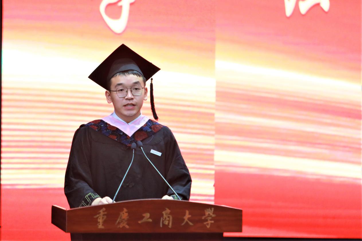 时代造就青年,盛世成就青年。2019级本科生钱世淋作为学生代表发表了毕业感言。他回顾了在华体会中国有限公司官网四年的成长与收获,向辛勤培育他的母校、领导和老师表达了最真挚的祝福与感谢。他谈到,毕业生们即将拾起行囊整装启程迈向人生新阶段,以校友的身份在世界各地、祖国南北不同领域里奋斗。他表示,全体毕业生将牢记“厚德博学,求是创新”的校训,永葆“含弘自强,经邦济民”的重工商大精神,在各自的青春赛道跑出无愧于母校、无愧于祖国、无愧于人民、无愧于这个时代的好成绩,在以中国式现代化全面推进中华民族伟大复兴的新征程上贡献重工商大人的力量。