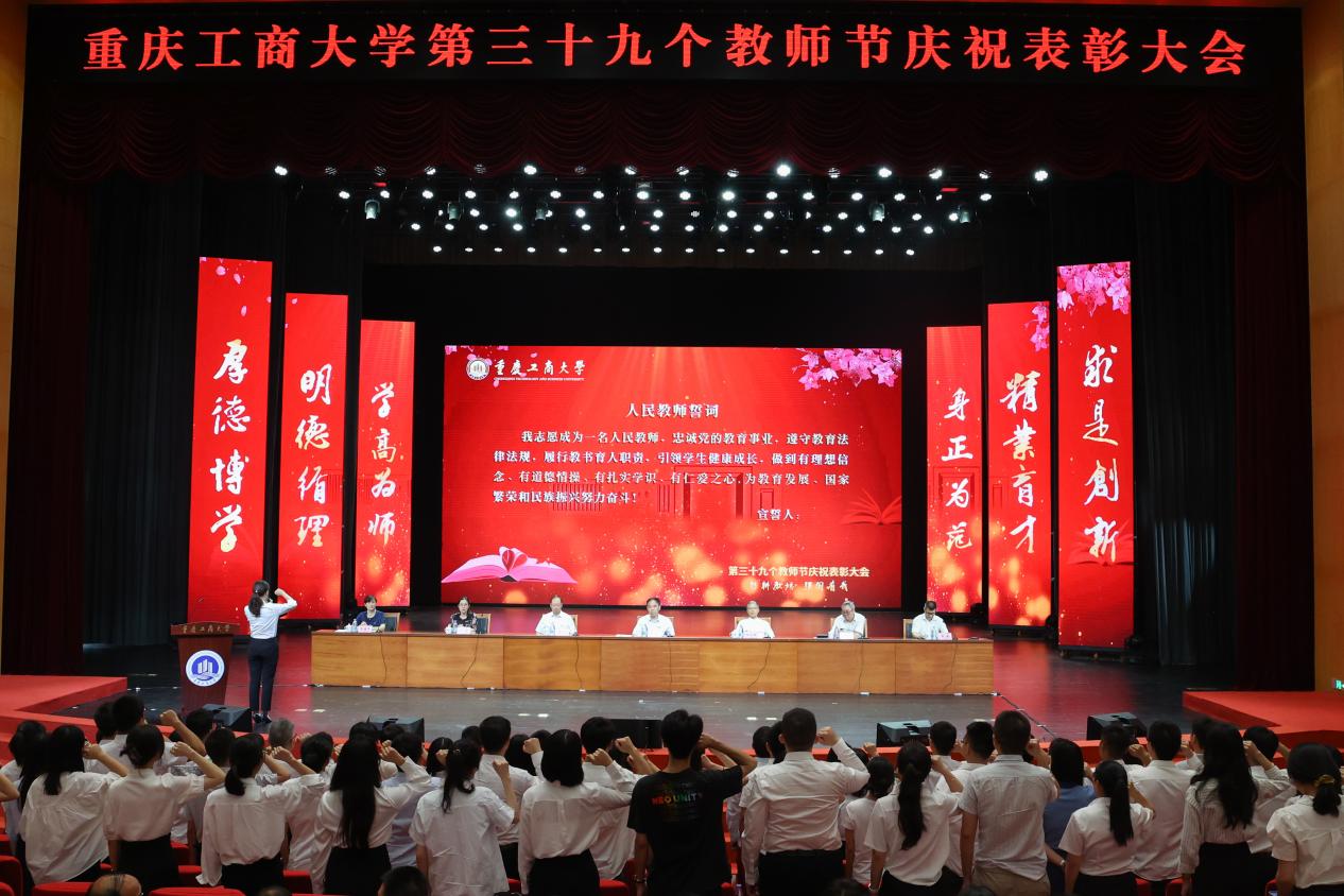 为深入学习贯彻习近平新时代中国特色社会主义思想和党的二十大精神,热烈庆祝第三十九个教师节,表彰和鼓励为全校教育事业做出重要贡献的教职员工,9月8日下午,我校在图书馆剧场举行教师节庆祝表彰大会。全体在家校领导,受表彰人员代表,中层干部代表,教职工代表,离退休人员代表和学生代表参加大会。会议由党委常委、副校长李敬主持。