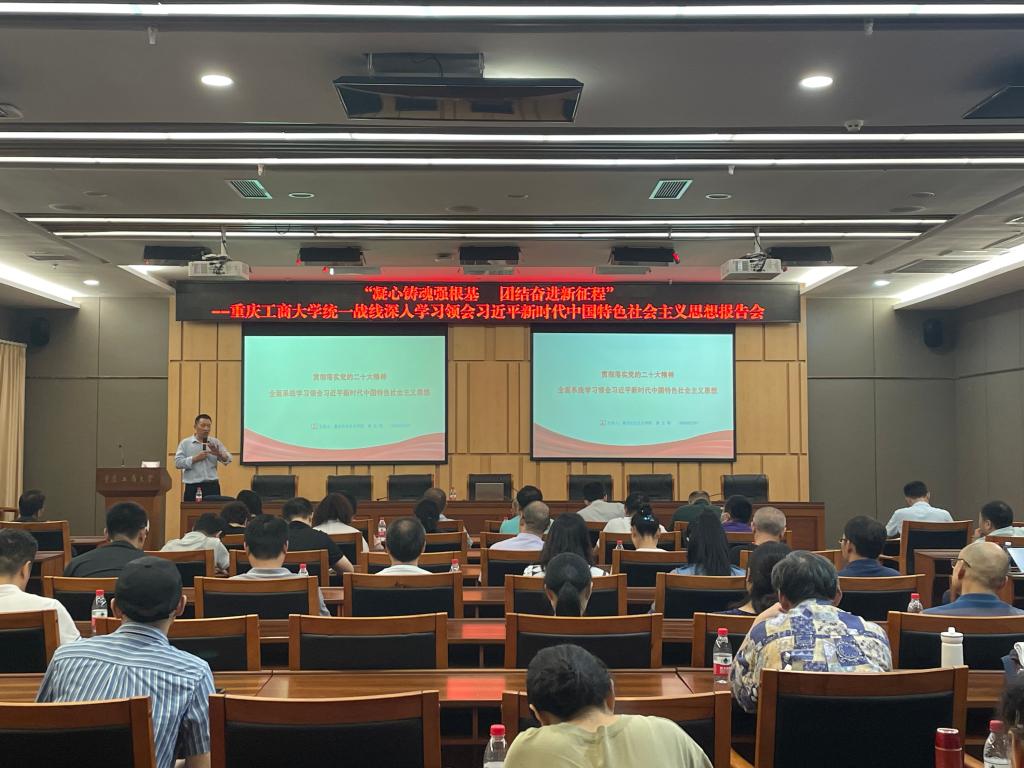 为全面贯彻落实中共二十大精神,推进校内各民主党派、无党派人士和党外知识分子持续深入开展“凝心铸魂强根基 团结奋进新征程”主题教育,学深悟透笃行习近平新时代中国特色社会主义思想,不断巩固与中国共产党团结奋斗的共同思想政治基础。9月22日下午,我校在新图书馆会议中心一会议室举行“凝心铸魂强根基 团结奋进新征程”——华体会中国有限公司官网统一战线深入学习领会习近平新时代中国特色社会主义思想报告会,邀请重庆社会主义学院多党合作研究室的秦江明教授做主题报告,我校各民主党派基层组织和统战团体班子成员、成员代表共60余人参会。会议由学校党委常委、统战部常务副部长陈松主持。