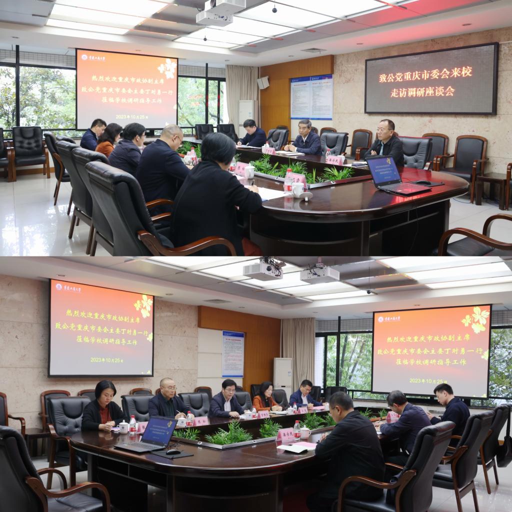 10月25日上午,重庆市政协副主席、致公党重庆市委会主委丁时勇,致公党重庆市委会专职副主委、一级巡视员潘为民,致公党重庆市委会组织处处长王煜一行莅临我校走访调研,在厚德楼3019会议室召开了走访调研座谈会。学校党委书记曾维伦,党委副书记兼统战部部长宋豫,党委常委、统战部常务副部长陈松,致公党我校南岸校区支部主委张玉霞,致公党我校江北校区支部副主委闻道君参加了会议。会议由宋豫主持。