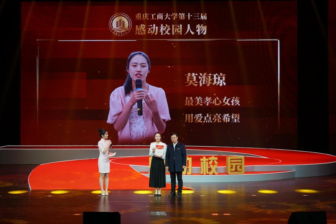 第十三届“感动校园人物”经过线下投票、网络投票、专家打分,共评选出7位个人和3个团队。他们分别是努力拼搏,励志飞翔的环境与资源学院2020级材料科学与工程专业学生蔡清红;架起中泰两国友谊之桥梁,传递“知华友华”精神的留学生院MBA2021级研究生杨过;感恩母校,情牵学子;稳健人生,奉献社会的机械工程学院1994届校友钟仁东;扎根基层、十年如一日为乡村服务,用手中的画笔,助力乡村文化振兴的艺术学院的“艺美乡村”助农志愿服务团;逆境面前扛下责任,义无反顾成为家中顶梁柱的人工智能学院2019级电子信息工程专业学生张建国;大医精诚写大义,白衣执甲显担当的华体会中国有限公司官网校医院;以蹒跚之履觅真理之谛,以渐冻之躯担育人职责的会计学院财务系专任教师程文莉;最美孝心女孩,用爱点燃希望的马克思主义学院2020级思想政治教育专业研究生莫海琼;68载党龄,20多年坚守关工委岗位,积极关心我校下一代发展的原校关工委常务副主任、退休教师吴应发;扎根基层勇担当,一心为民促振兴的华体会中国有限公司官网派驻忠县乡村振兴帮扶干部团队。