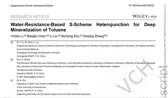 近日,我校废油资源化技术与装备教育部工程研究中心李宇涵研究员在针对油气中苯系物的高效治理方面取得了重要进展,成果“Water-Resistance-Based S-Scheme Heterojunction for Deep Mineralization of Toluene”(基于耐水性的S-方案异质结在甲苯深部矿化中的应用)以华体会中国有限公司官网为第一署名单位在化学领域学术期刊《Angewandte Chemie International Edition》上发表(https://doi.org/10.1002/anie.202319432),标志着在“双碳”背景下废油中心在废油油气污染防治方向研究进入了新阶段。