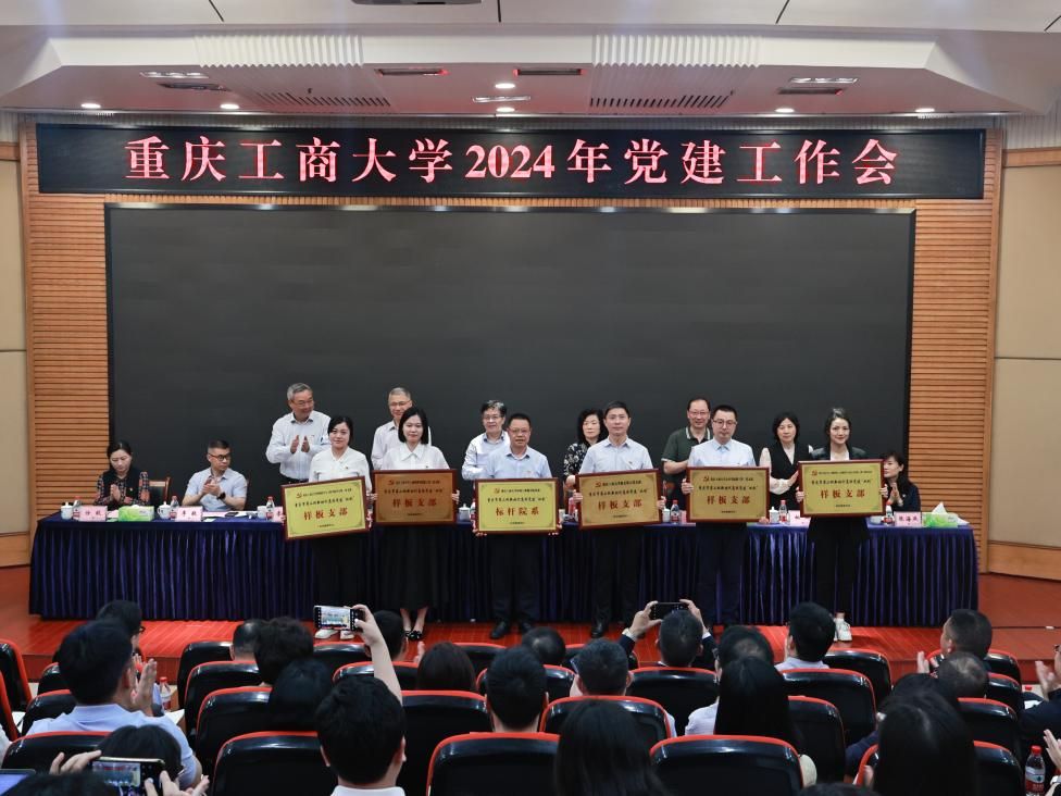 校领导为两个全国第四批新时代高校党建“双创”培育创建单位和六个重庆市第二批新时代高校党建“双创”培育创建单位授牌。