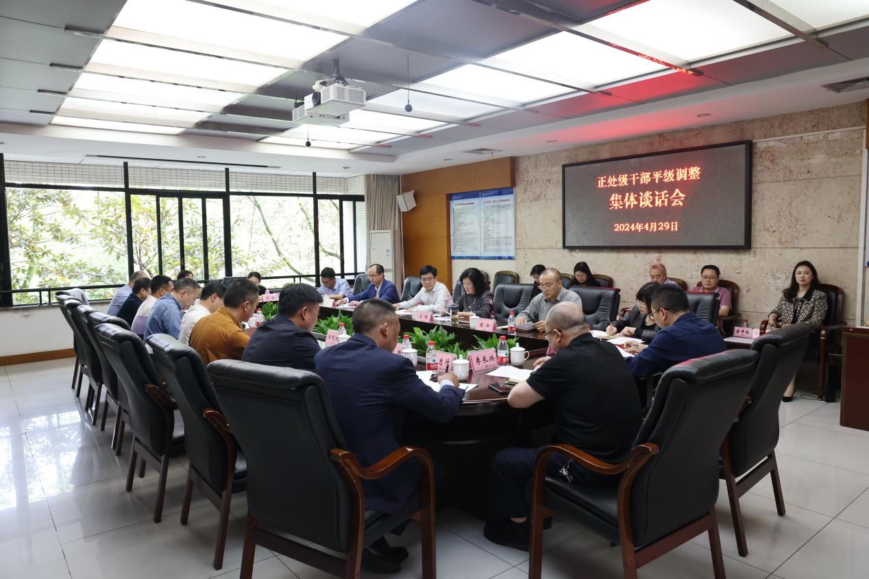 4月29日下午,学校党委在厚德楼3019会议室召开正处级干部平级调整集体谈话会。学校党委书记曾维伦,学校党委副书记宋豫,离任干部、平级调整任职干部参加会议。会议由宋豫主持。