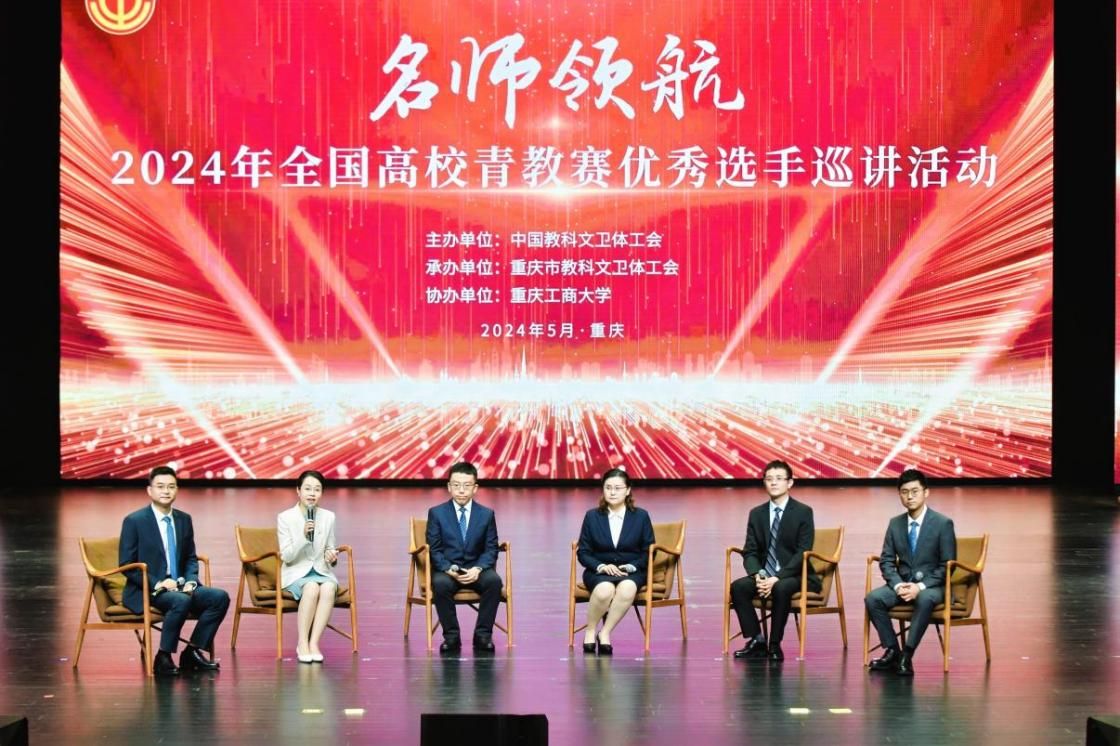 教学沙龙环节,巡讲教师与来自重庆第六届全国高校青教赛参赛选手、西南政法大学教师武夫波,就如何上好一门课、青教赛筹备经历、课程思政如何体现以及青年教师如何平衡教学和科研等热门话题,进行了深度对话,与现场师生展开了精彩互动。“名师大咖”的心路历程,让师生们深切感受到了他们至诚报国的理想信念、躬耕教坛的育人情怀、精益求精的工匠精神,成为一场“为党育人、为国育才”教学初心的共同探寻。