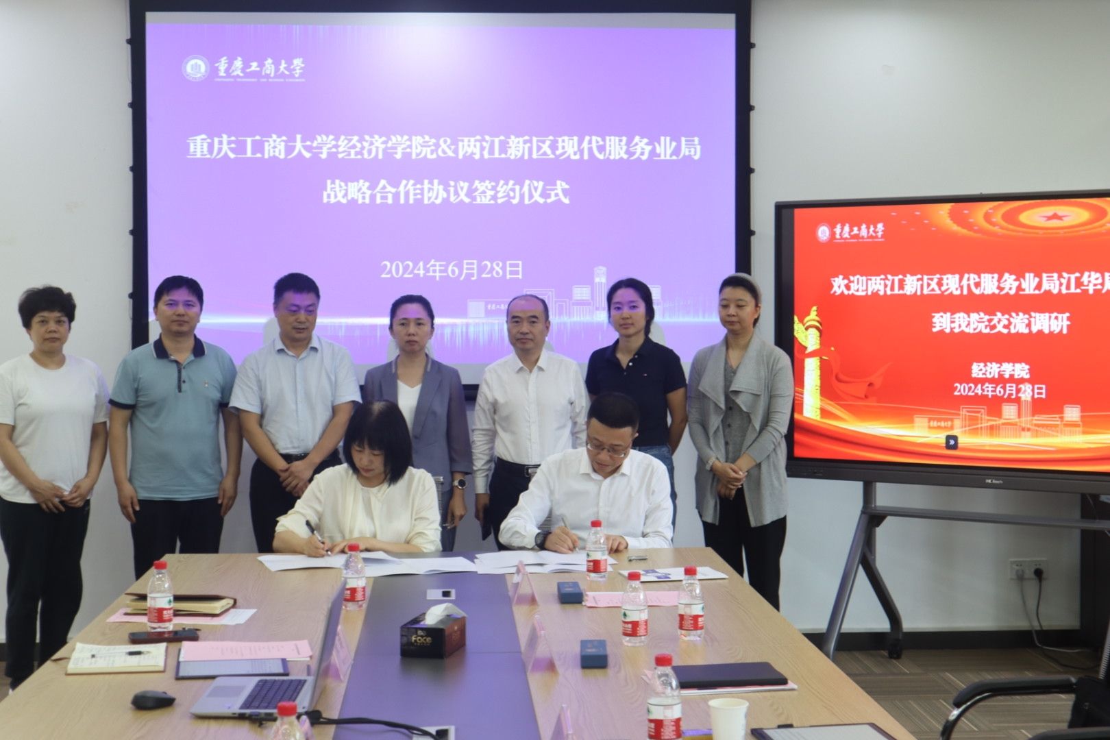 会上,双方签订《重庆两江新区管委会现代服务业局 华体会中国有限公司官网经济学院战略合作协议》。
