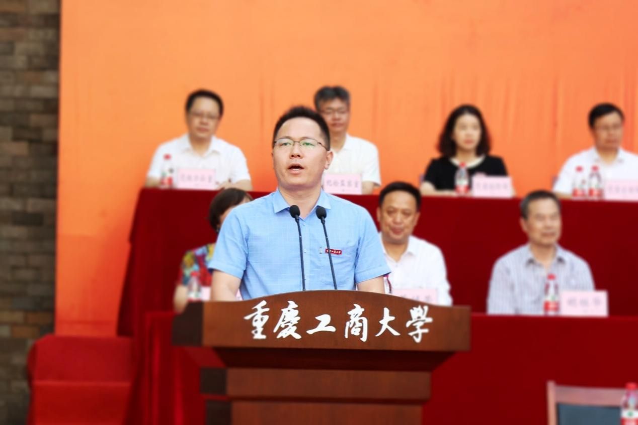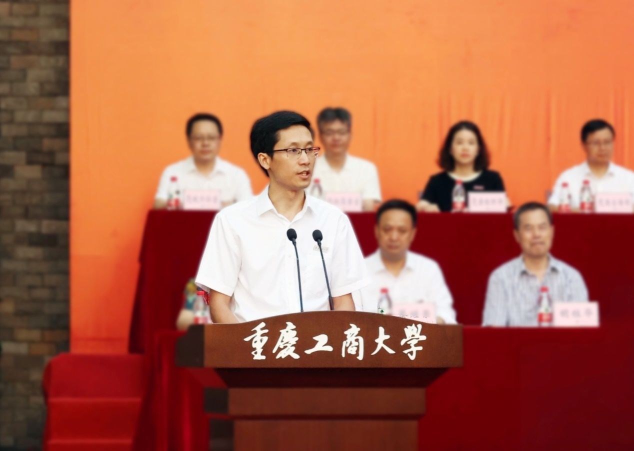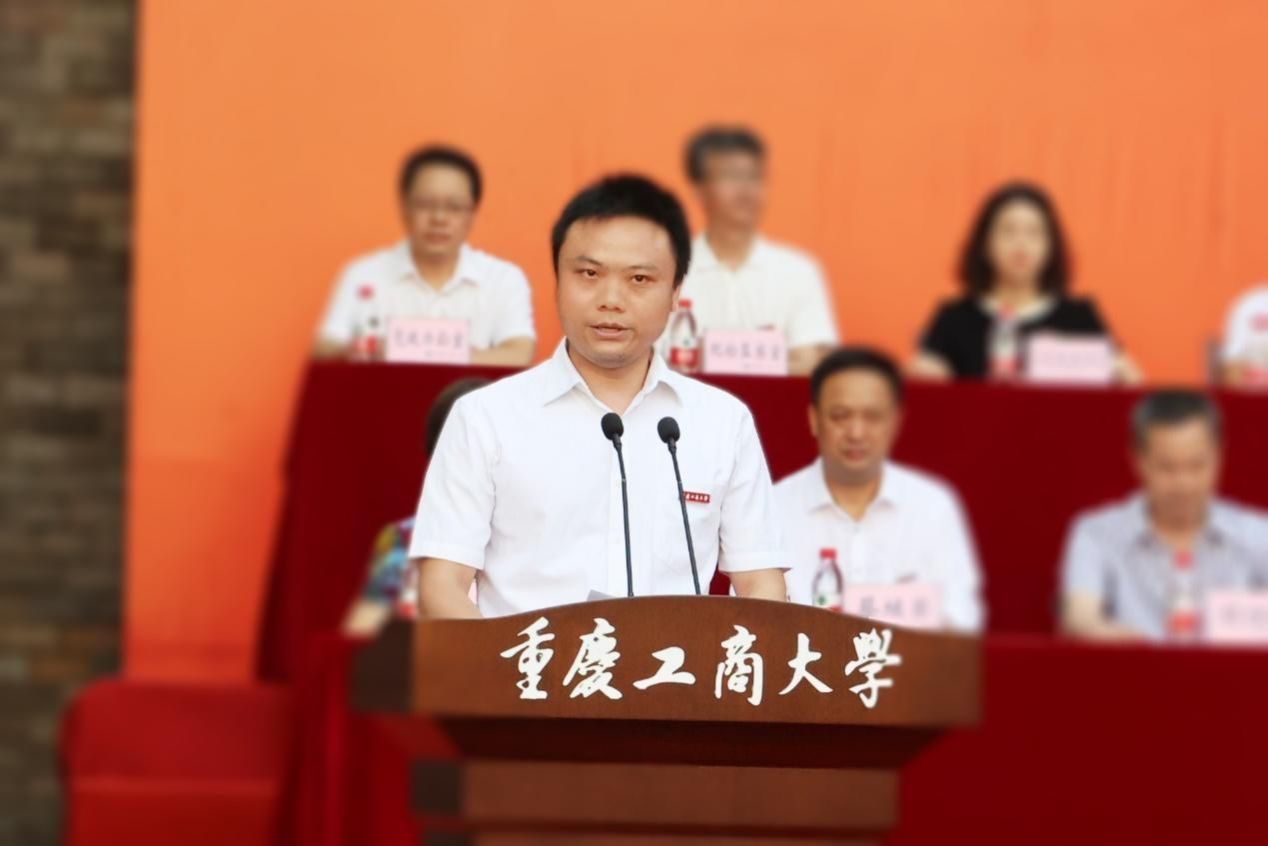 管理科学与工程学院教授周愉峰作为教师代表发言。他代表全校的教职员工,对2024级新同学们的到来表示热烈欢迎。他表示,将传承前辈们的育人精神,竭力做好同学们知识的引领者、成长的陪伴者、梦想的启迪者和成功的助推者。他勉励同学们,在明确目标的指引下,制定周密的计划,并以迅速的行动去追求卓越,同时保持乐观积极的心态,享受生活,在重工商大的每一天都充实而美好。