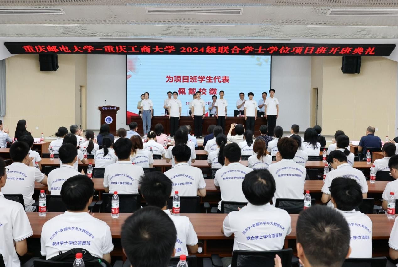 曾维伦谈到,党的二十届三中全会《决定》对统筹推进教育科技人才体制机制一体改革作出重要部署。学校要深入学习贯彻党的二十届三中全会精神,把高质量发展作为教育的生命线,加快建设高质量高等教育体系,为推进中国式现代化提供全方位的人才支撑和智力支持。2024年全国教育大会强调,要完善高校学科设置调整机制和人才培养模式,加强基础学科、新兴学科、交叉学科建设和拔尖人才培养。他指出,当前,经济学与数据科学的交叉融合是数字经济发展战略的重要支撑,首届联合学士学位培养项目正式招生开班,标志着我校与重庆邮电大学在学科交叉、商工融合、人才培养和科研合作方面迈出了新的实质性步伐。他希望两校以此为起点,共同深化优势学科跨校联合办学的高质量发展道路,更好培养德智体美劳全面发展的社会主义建设者和接班人,更好服务中国特色社会主义教育强国建设。
