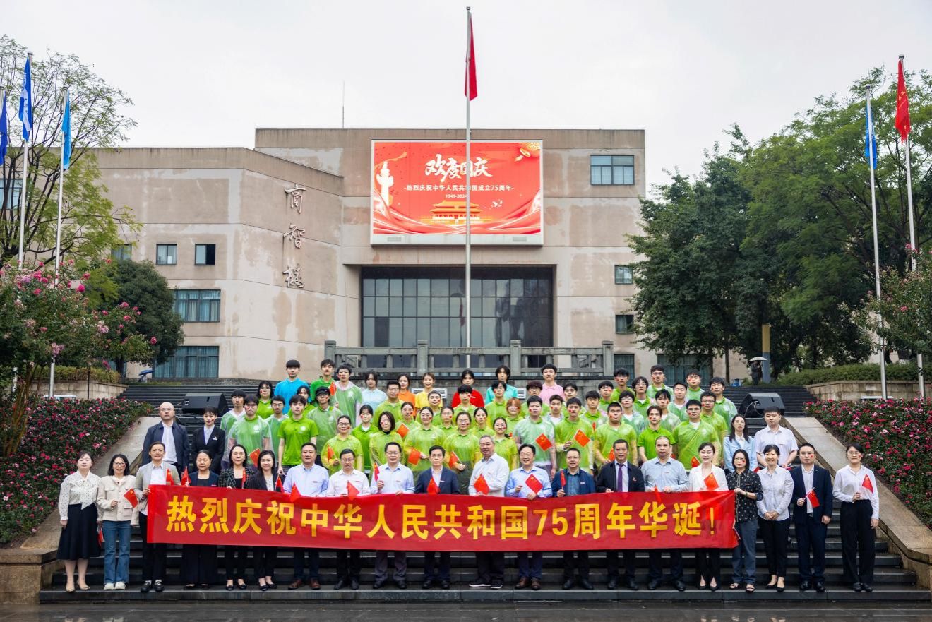 曾维伦在讲话中深情回顾了中国共产党团结带领全国各族人民,前赴后继、百年奋斗的光辉历程。他表示,新中国成立75年来,在党中央的坚强领导下,近代以来久经磨难的中华民族实现了从站起来、富起来到强起来的伟大飞跃,演绎了一段民族史册上的伟大传奇,踏上了以中国式现代化全面推进强国建设、民族复兴的新征程。伴随着伟大祖国铿锵有力的前进步伐,学校也站在新的起点上,全面建设特色优势突出、国际知名的现代化高水平大学,为奋力谱写教育强国建设贡献重工商大力量。