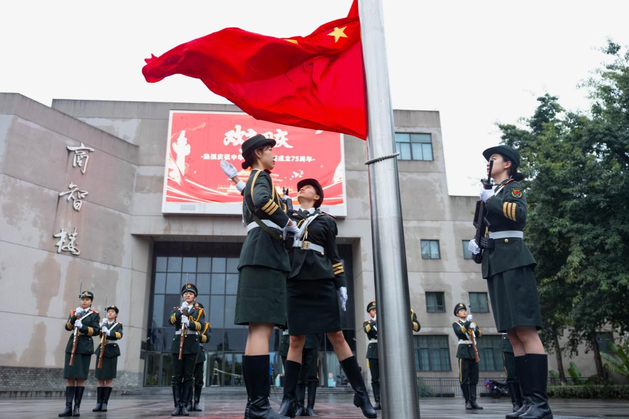 为热烈庆祝中华人民共和国成立75周年,致敬伟大祖国,厚植爱国情怀,弘扬民族精神,10月1日上午,学校在含弘广场隆重举行国庆升旗仪式。学校党委书记曾维伦出席并讲话,学校党委常委、副校长李国军参加升旗仪式。