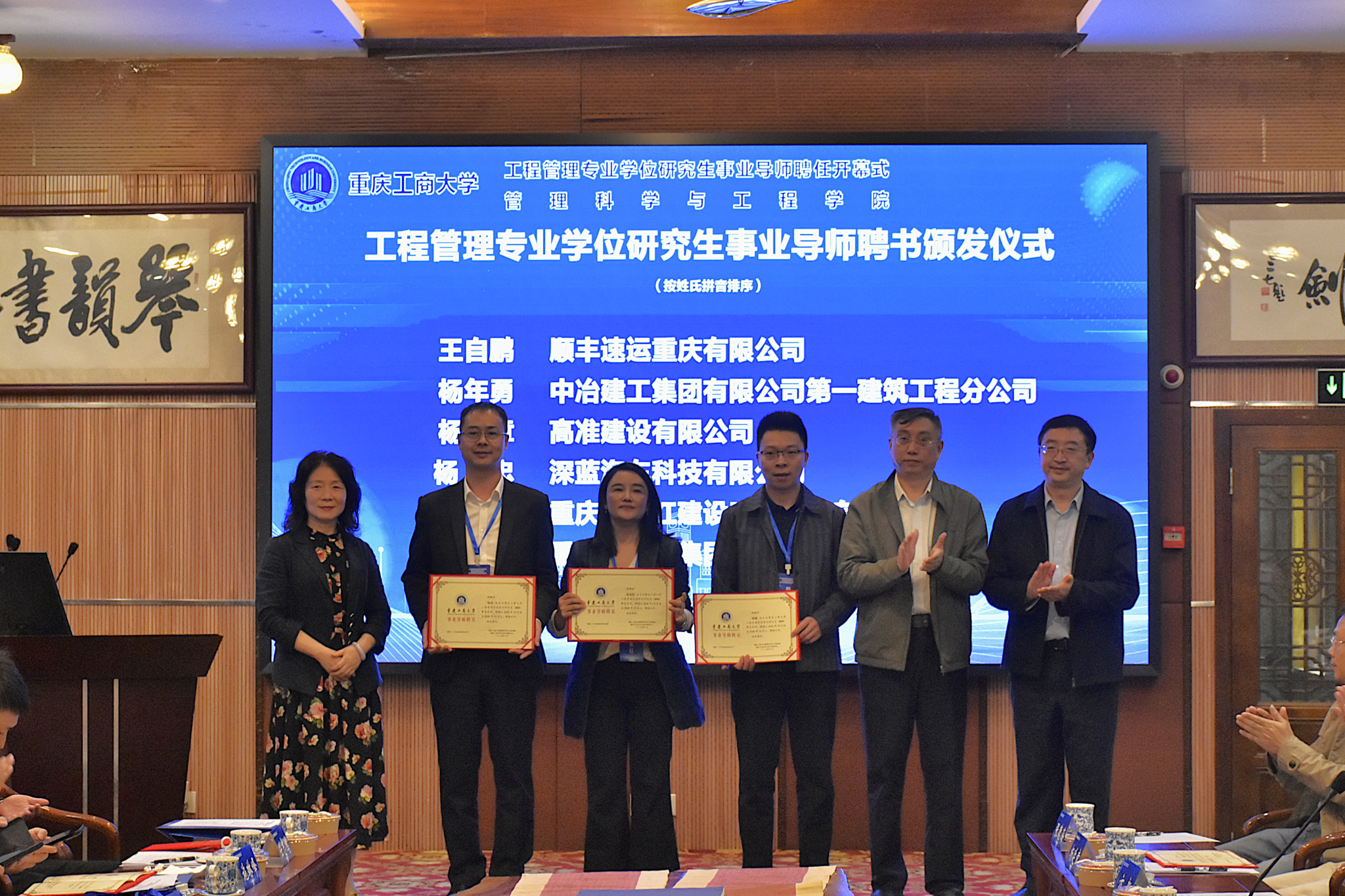 管理科学与工程学院副院长陈久梅宣读了《关于聘任华体会中国有限公司官网工程管理专业学位研究生事业导师的决定》。参会领导依次为受聘事业导师颁发聘书。