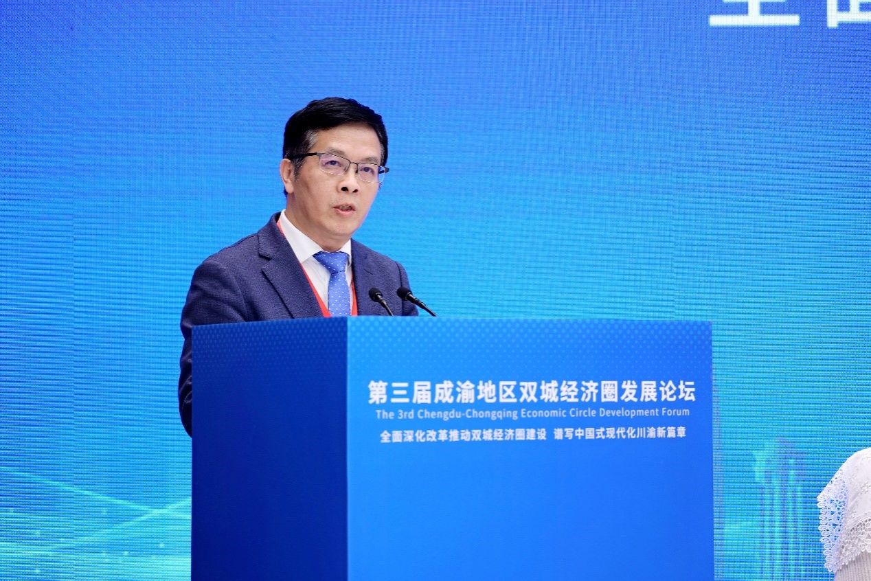 南京大学长江产业发展研究院常务院院长刘志彪、国家发展和改革委员会国土开发与地区经济研究所原所长肖金成、中国社会科学院工业经济研究所研究员陈耀、北京大学政府管理学院副院长陆军、中山大学管理学院教授毛蕴诗紧扣“全面深化改革推动双城经济圈建设,谱写中国式现代化川渝新篇章”论坛主题,分别以《长三角区域高质量一体化发展:关键问题与推进次序》《成渝地区双城经济圈的次区域合作研究》《推动成渝地区双城经济圈高质量建设的动力机制思考》《成渝地区双城经济圈面临的挑战及合作策略》《大湾区产业持续升级路径探索》为题发表主题演讲,从不同层面、不同角度对成渝地区双城经济圈建设提出了建议。