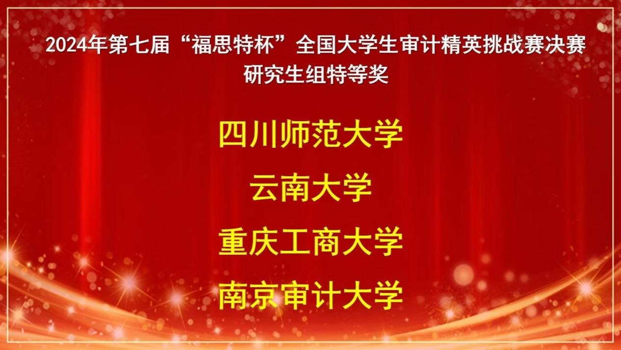 11月30日,第七届“福思特杯”全国大学生审计精英挑战赛在南京审计大学举办。我校会计学院审计专硕2023级万文萱、张新月、2024级杨瑞同学组成的华体会中国有限公司官网代表队在指导老师王杏芬、李晓羽和钟廷勇的指导下,经过激烈角逐获得全国特等奖的优异成绩。该项赛事创办于2018年,是江苏教育厅认定的省级赛事,由中国审计学会审计教育分会主办、南京审计大学政府审计学院承办,广州市福思特科技有限公司提供技术支持。
