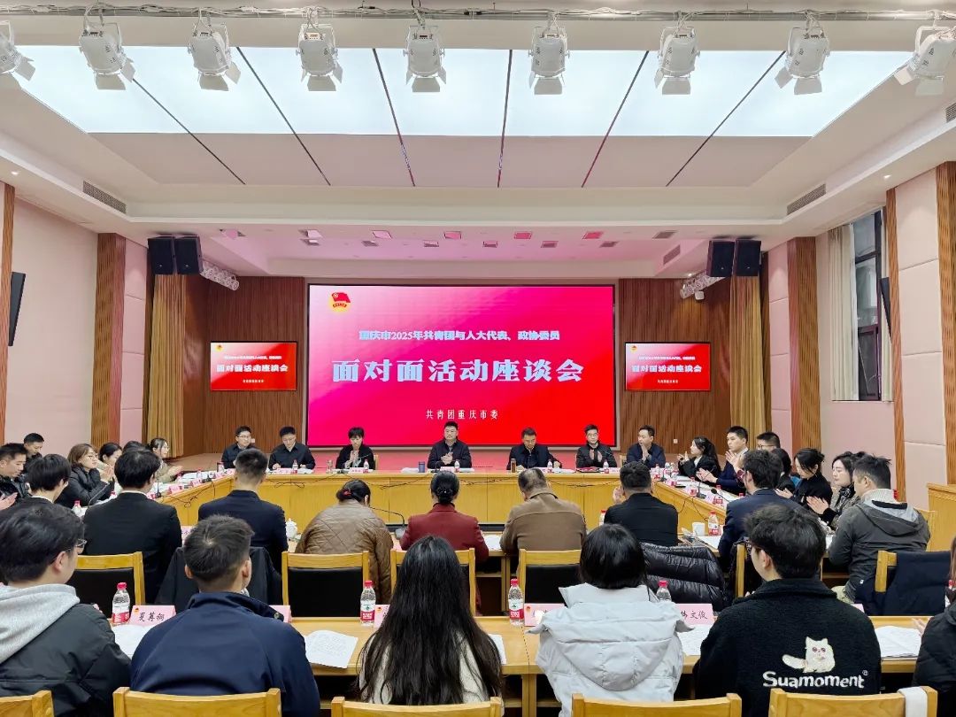 2025年1月2日,重庆市“共青团与人大代表、政协委员面对面”活动上,我校金融学院毛皓天同学作为获得优秀提案奖的学生代表在会上作分享交流。
