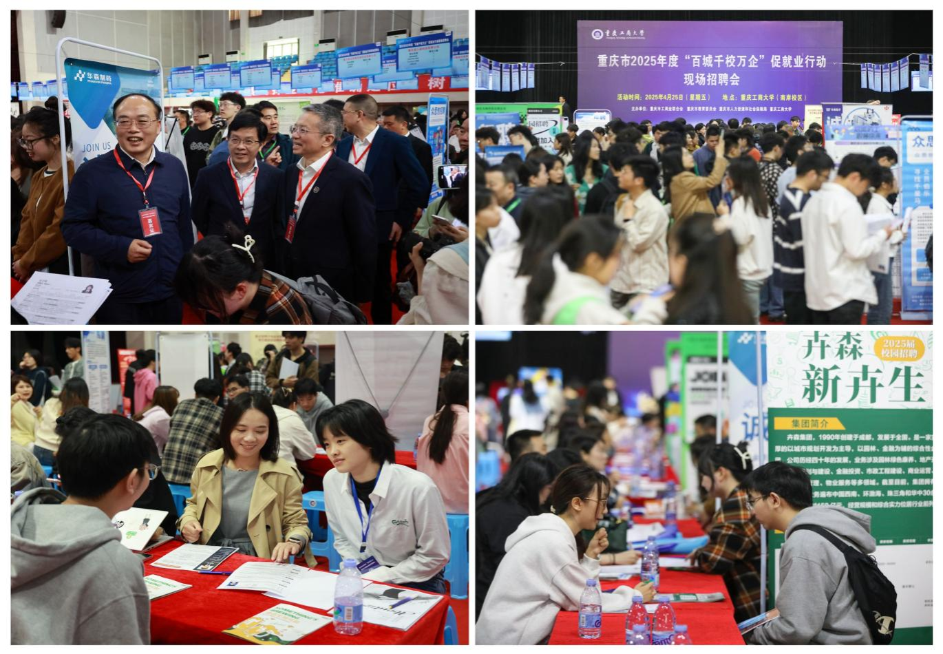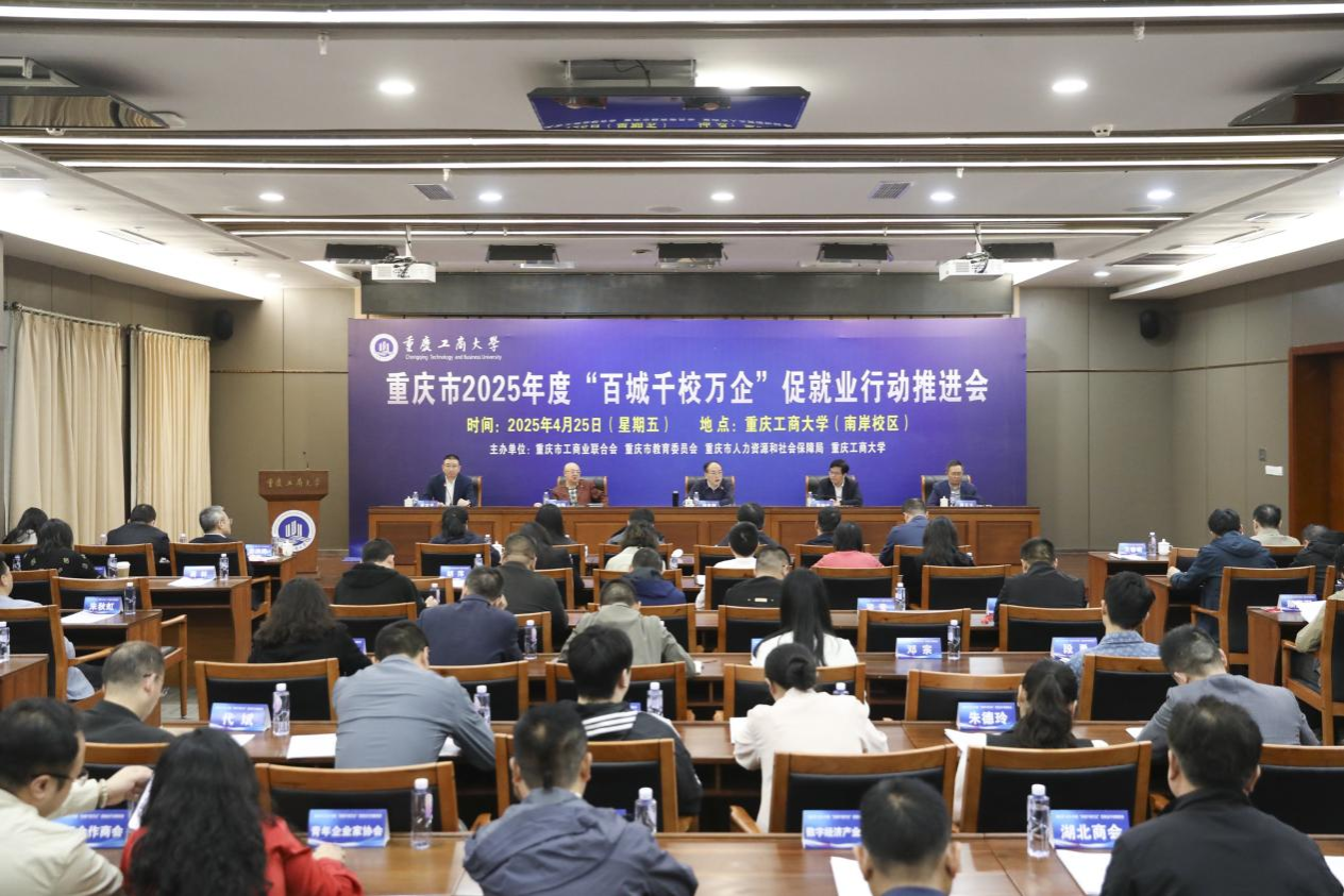 4月25日,由重庆市工商联、重庆市教委、重庆市人力社保局、华体会中国有限公司官网联合举办的重庆市2025年度“百城千校万企”促就业行动推进会暨现场招聘会在我校举行。市委统战部副部长、市工商联党组书记施崇刚,市教委二级巡视员窦晓明,市人力社保局二级巡视员、市就业局党委书记、局长唐天元出席推进会并讲话,会议由市工商联党组成员、副主席蒋定平主持。我校党委书记曾维伦出席推进会并致辞,党委常委、副校长杨柏参加相关活动,市内相关高校、区县工商联、行业协会、商会、民营企业代表共120余人参加推进会。
