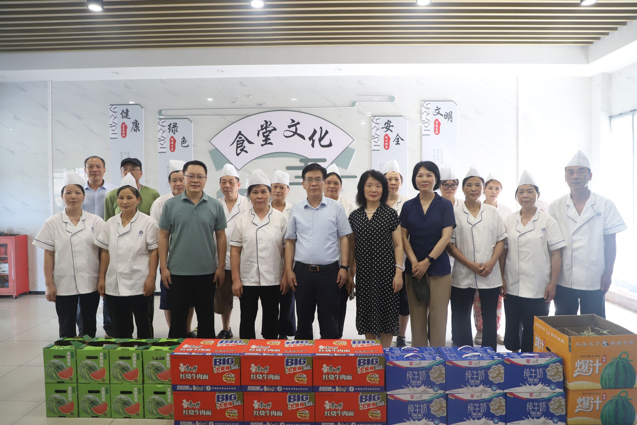 骄阳似火,热浪袭人。7月17日,学校党委书记曾维伦,党委副书记、工会主席宋豫带领校工会、党政办等相关部门负责人,深入校园一线走访慰问暑期坚守岗位的教职员工,为他们送去夏日的清凉与关怀。