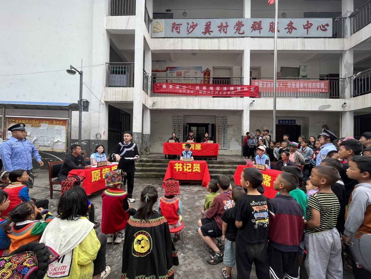 7月7日至10日,“渝见凉山”民族地区法律援助团深入凉山彝族自治州甘洛县开启了一段服务基层、传递温暖的志愿之旅。团队师生走进凉山甘洛县吉米镇阿沙莫村搭建起彝汉双语模拟法庭。在反家暴的庭审演绎里,展现对弱者的守护;在反霸凌的情景再现中,映照着对少年的呵护。彝族队员负责全程翻译,让法律条文跨越语言隔阂,庭审后递出的普通话手册,载着沟通无碍的期盼。校企协同的捐赠现场,崭新的生活物资堆成小山,助学款紧握在彝族孤儿掌心,每一份帮扶都像一缕暖阳,融解山区振兴路上的冰霜。同时,团队师生走进甘洛县“爱心蜀托”公益性暑期托管班,防诈骗情景剧让学生们看透诈骗套路,将“三不”原则刻入脑海。志愿者们以剧中案例为骨架开展“微模拟法庭”,法官、公诉人等角色按程序履职,不仅让法律条文有了温度,更让法治精神悄然生长。此次社会实践活动,法治的种子借由双语庭审扎根民心,在彝乡大地上勾勒出一幅传统与现代交融、温情与规范共生的画卷。