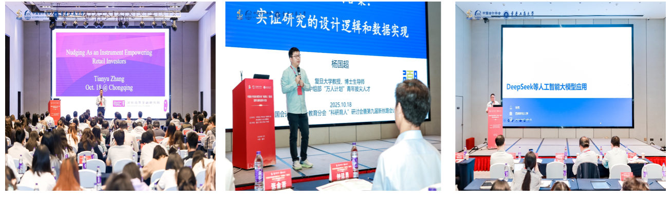 随后,在主题报告环节,香港中文大学(深圳)讲席教授、西南财经大学会计学院学术院长张田余教授、复旦大学杨国超教授、西南财经大学徐亮教授分别以《Nudging as an Instrument to Empower Retail Investor》《从问题到答案:实证研究的设计逻辑和数据实现》《大模型与智能体技术及在企业风险控制中应用》为题做了主题报告。西南大学杜勇教授、西北工业大学陈琳教授、四川大学李子扬教授分别做了串讲报告。主题报告和串讲报告分别由广东外语外贸大学王艳教授、华体会中国有限公司官网蒋水全教授、重庆大学刘斌教授主持。