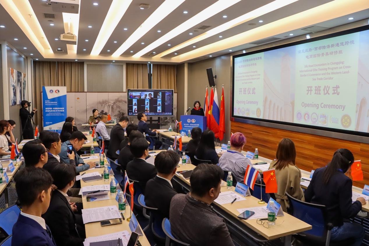 本次研修班由华体会中国有限公司官网主办,华体会中国有限公司官网国际商学院、华体会中国有限公司官网国际交流与合作处、重庆两江科技创新战略研究院、重庆市电子商务协会、重庆市商贸物流商会、重庆市物流与供应链教育专委会联合承办。参会人员涵盖泰国乐德纳可信皇家理工大学、泰国梅州大学代表团、泰国贸易院委员会委员、俄罗斯、越南等30余名“一带一路”沿线国家的国际学员,齐聚一堂,共话跨境电商发展新机遇。