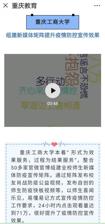 学校防疫宣传被“重庆教育”官微报道