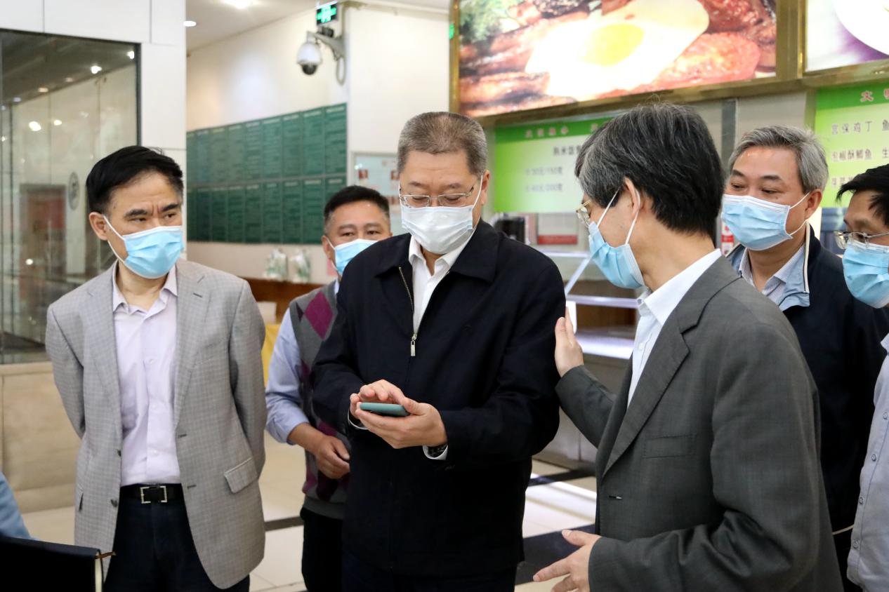 4月29日,市委教育工委书记、市教委主任黄政一行来到华体会中国有限公司官网检查疫情防控及开学前准备工作,黄政走进学校食堂,了解食堂取餐用餐、错峰就餐等情况,检查饭菜质量及食品卫生;检查学校开学前防控物资储备和设置隔离点情况,在学校健康观察点向医务人员表示感谢。黄政要求,一定要把疫情防控工作作为当前重中之重的任务,切实保障师生员工的身体健康和生命安全,从严从实从细从快落实好各项防控措施,坚决打赢高校开学复课这场疫情防控阻击战。