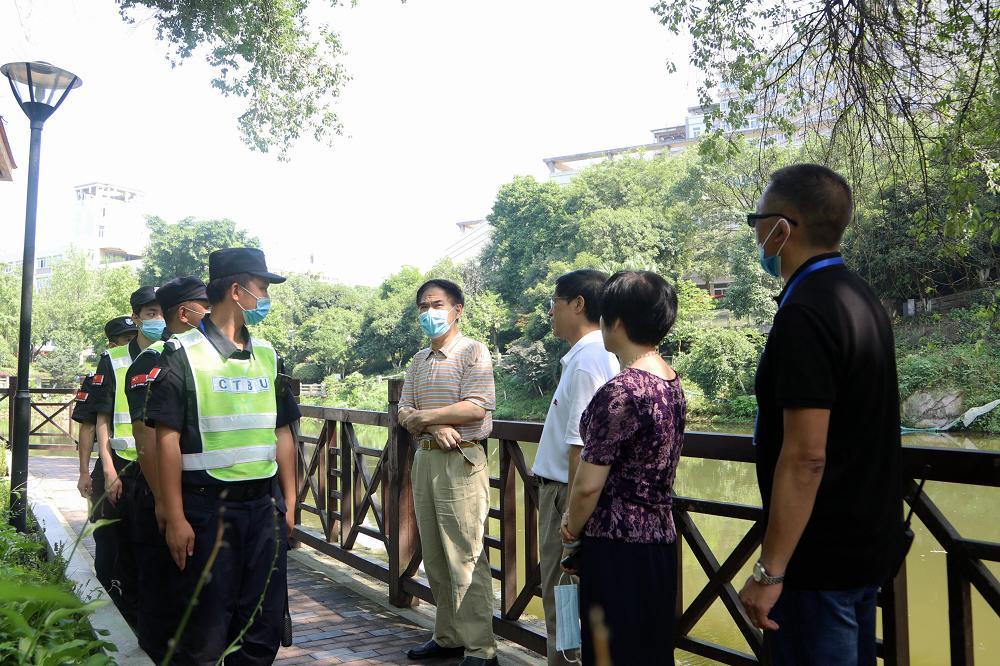 为深入贯彻落实6月18日教育部公安部召开的全国学校安全工作视频会以及市教委套开全市教育系统安全工作视频会主要精神,进一步做好疫情防控期间的校园安全工作,6月25日上午,校党委书记李志雄,副校长陈兴述、宋豫,校长助理谭松涛带领党政办、党委宣传部、学生处、保卫处、后勤处、基建处等部门负责人对校园进行了安全检查。