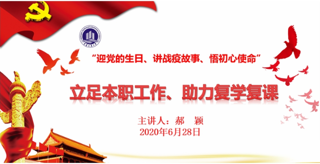 6月28日下午,经济学院教工三支部通过企业微信的方式开展了“迎党的生日、讲战疫故事、悟初心使命”线上组织生活会,会议由支部书记郝颖同志主持,全体支部党员参加。