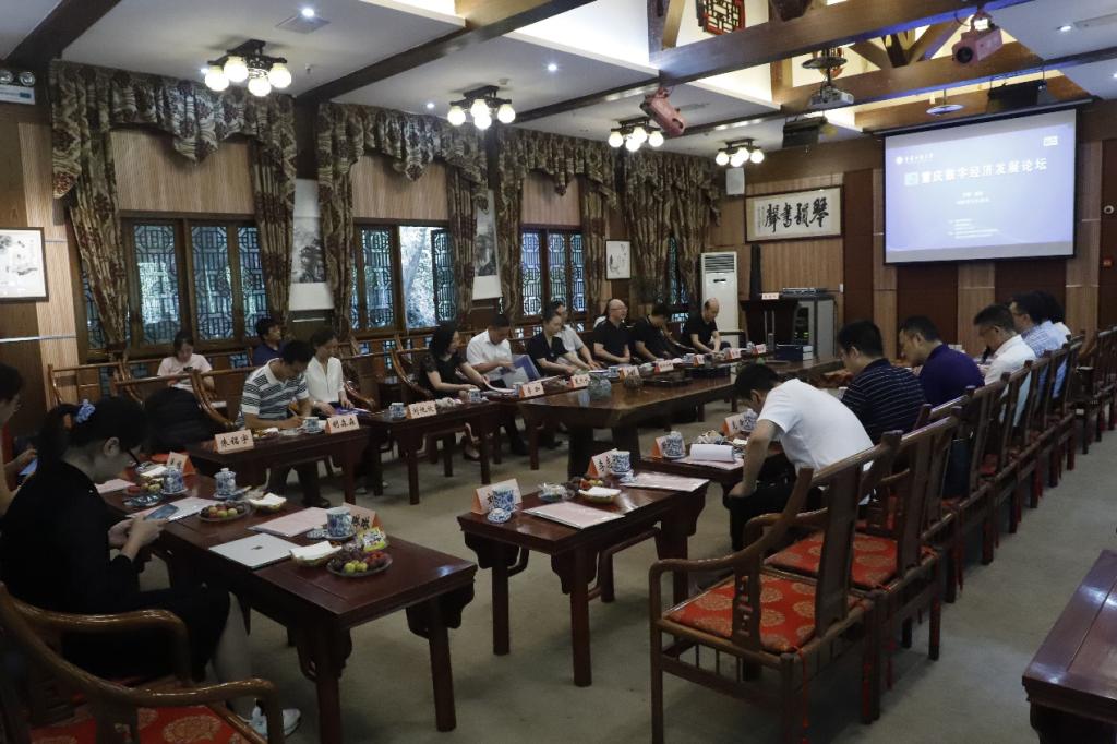 8月28日,重庆数字经济发展论坛在我校南山书院问松厅顺利开幕。本次论坛由重庆市委网信办、华体会中国有限公司官网、新服务30人论坛主办,我校管理科学与工程学院和重庆现代商贸物流与供应链协同创新中心承办。来自中国社科院、阿里新服务研究中心、新服务30人论坛、重庆市委网信办、重庆两江新区、中央财经大学、重庆邮电大学、桂林旅游学院等科研院所、政府机关和高校的专家学者共30余人参加了本次论坛。论坛由我校管理科学与工程学院院长黄钟仪主持。
