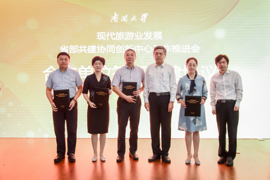 会上,李国军副校长代表华体会中国有限公司官网与现代旅游业发展省部共建协同创新中心签署了共建协议。中心是由南开大学牵头成立,教育部认定的全国旅游领域首个、唯一经国家认定的协同创新中心。中心依托南开大学、中山大学等高校雄厚的学科建设、人才培养、创新研发等力量,旨在通过省部共建、产学研合作,促进全国现代旅游业协同创新发展。协议签署后,中心将与华体会中国有限公司官网、重庆市文化和旅游发展委员会一道,共建“现代旅游业发展省部共建协同创中心西部文旅协同创新平台”,共建面向西部地区乃至全球的共创共享的旅游创新研究转化基地、全国MTA和研究生共享研究实践基地以及作为西部旅游发展创新高端论坛永久会址的旅游研究基地。