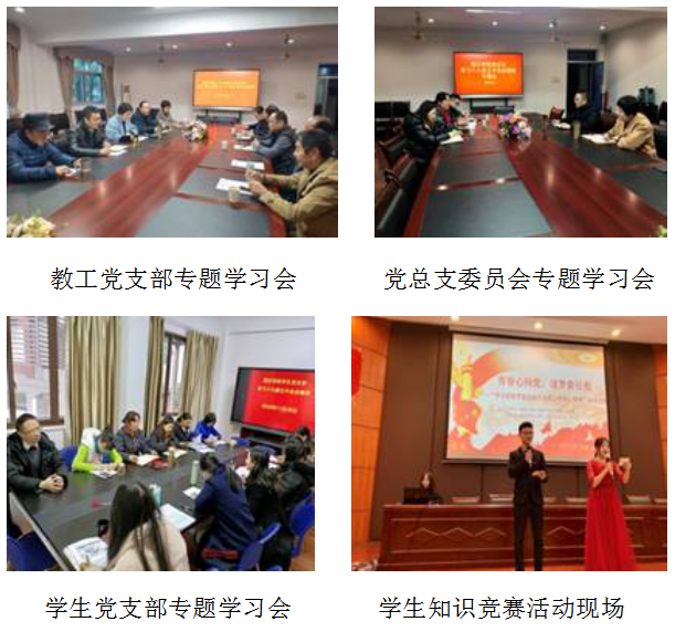 10月26日至29日,中国共产党第十九届中央委员会第五次全体会议在北京召开。我校各二级学院通过主题党日、专题学习、宣讲报告会等形式,积极组织学习贯彻全会精神。