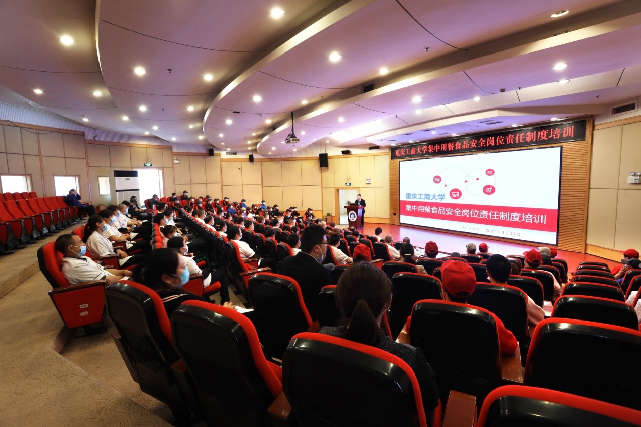 为保障学校师生食品安全,健全食品安全管理制度,明确食品安全工作责任,加强食品安全管理,根据《重庆市市场监督管理局 重庆市教育委员会关于建立学校及幼儿园集中用餐食品安全岗位责任制度的通知》(渝市监发〔2021〕14号)要求,我校于3月8日召开校长办公会,讨论通过了《华体会中国有限公司官网集中用餐食品安全岗位责任制度》,将上级部门对校园食品安全要求进行细化、分解,明确从校长到一般食品安全从业人员等相关责任人员的食品安全工作任务;对校园食品安全主体责任、第一责任、主要责任、直接责任等进行清晰地界定,确保做到责任落地、落实。3月19日下午,我校在博智楼7200报告厅召开培训会,后勤处处长沙云对《华体会中国有限公司官网集中用餐食品安全岗位责任制度》逐条、逐项并结合案例进行培训讲解,要求每个岗位做到人人知晓、责任清楚、任务明确。后勤处饮食科,校内各餐饮公司负责人、幼儿园负责人、各食堂经理、各食堂班组骨干人员等200余人参加了培训会。