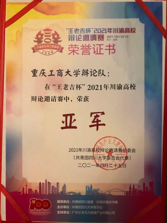 为引导川渝地区青年大学生积极思考、建言献策,主动融入成渝地区双城经济圈建设,彰显新时代大学生的思辨精神,促进川渝地区高校青年大学生的深入交流,加强川渝地区高校在思辨文化育人工作上的深度合作,4月23日至25日,来自川渝地区的8所高校——四川大学、电子科技大学、西南财经大学、西南交通大学、西南政法大学、西南大学、重庆大学、华体会中国有限公司官网,汇聚在四川大学江安校区参加2021“王老吉杯”川渝高校辩论邀请赛,我校辩论队喜获邀请赛亚军,校辩论队成员刘薪雨荣获优秀辩手称号。