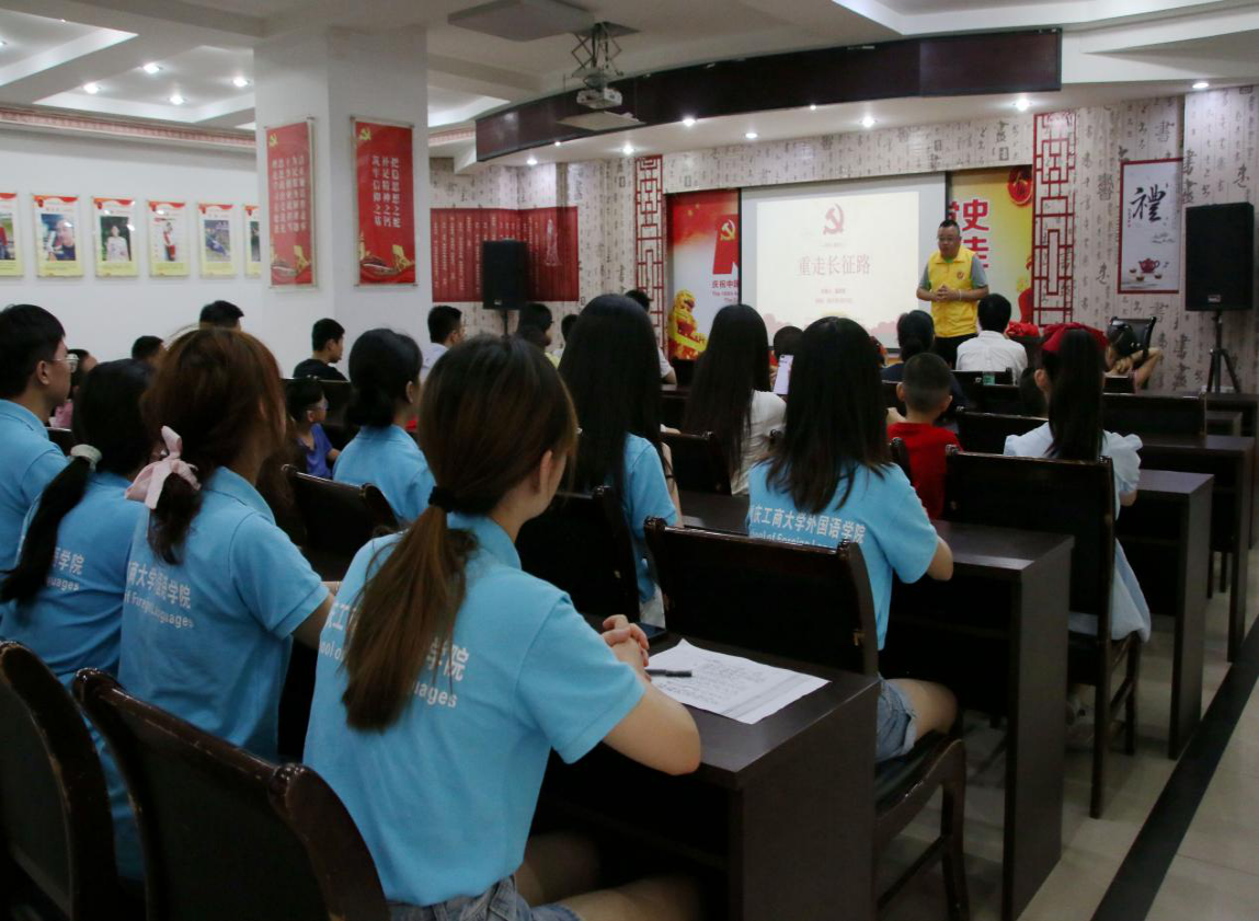 为引导广大社区居民朋友们学党史、知党事、感党恩、听党话、跟党走,7月15日上午,重庆市渝中区社区居民和华体会中国有限公司官网外国语学院2021暑期“三下乡”社会实践团一起上了一堂关于“红军长征”的特色党课,重庆市团校校长涂凯一行人莅临现场听取党课。重庆市渝中区老街公益文化发展中心成员童思斯从走长征路的前提、红军为什么能够获得长征的胜利以及红军怎样在长征途中获得老百姓的支持这三方面为同学们带来一堂别开生面的特色党课。同学们认真听讲,收获颇丰。