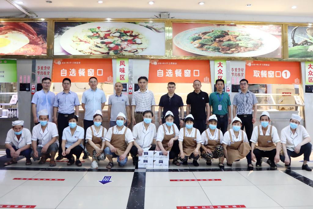 7月23日上午,学校党委书记李志雄、副校长李敬带领党政办公室、党委宣传部、学工部、保卫部、国际合作与交流处、后勤处、工会等相关部门负责人先后到学校厚德楼、保卫处、兰园食堂、兰花湖片区、留学生公寓、南区学生公寓、中干值班室等慰问暑期留校师生,与他们亲切交流、赠送慰问品并检查校园暑期安全工作。